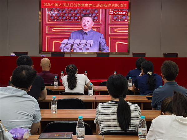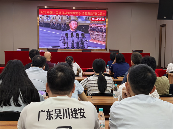 9月3日上午,公司總部全體員工在公司禮堂集中觀看紀(jì)念中國人民抗日戰(zhàn)爭暨世界反法西斯戰(zhàn)爭勝利80周年大會直播。